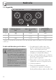 Anvendelse Kogepladen er forsynet med et styringsmodul, som optimerer/begrænser energiforbruget. Hvis de samlede indstillede effektniveauer overstiger den maksimalt tilladte grænse, sørger den elektroniske styreenhed for at styre den forsynede effekt på pladerne. Modulet forsøger at opretholde de maksimale effektniveauer, der kan forsynes. På displayet vises de indstillede niveauer fra det automatiske styringsmodul.