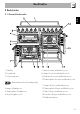 Beskrivelse DA 2.3 Betjeningspanel 1 Knapper for pladens kogezoner Bruges til at styre kogezonerne på induktionskogepladen. Tryk på og drej knapperne i urets retning for at regulere funktionseffekten for pladen, som går fra et minimum på 1 til et maksimum på 9. Den ydede effekt angives af displayet, som er placeret på kogepladen. 2 Ur med programmeringsfunktion Nyttig til visning af klokkeslæt, indstilling af programmerede tilberedninger og til timeren med minuttæller.
