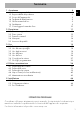 Sommario 1.1 1.2 1.3 1.4 1.5 1.6 1.7 4 Avvertenze generali di sicurezza Responsabilità del produttore Scopo dell’apparecchio Targhetta di identificazione Questo manuale d’uso Smaltimento Come leggere il manuale d’uso 2 Descrizione 2.1 2.2 2.3 2.4 2.5 11 Descrizione generale Piano cottura Pannello comandi Altre parti Accessori disponibili 11 12 13 14 15 3 Uso 3.1 3.2 3.3 3.4 3.5 3.6 3.