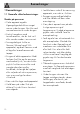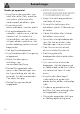 Afmontering og montering af tætningslisten Afmontering af tætning: • Fjern krogene i de fire hjørner, og træk tætningen udad. Montering af tætning: • Sæt krogene i tætningens fire hjørner. Gode råd til vedligeholdelse af tætningen Tætningen skal være blød og elastisk. • For at holde tætningslisten ren bruges en svamp, som ikke ridser, og der vaskes med lunkent vand. Hvad bør man gøre hvis... Apparatet ikke virker: • Afbryderen er defekt: Kontrollér i sikringsboksen og at afbryderen er i orden.