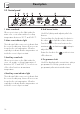 Description 2.2 Control panel 1 Main oven knob Allows you to turn on the light inside the main oven or set a fan-assisted cooking temperature between 50°C and 245°C. 2 Main oven indicator light The indicator light comes on to indicate that the oven is heating up. It turns off as soon as it reaches the set temperature. It flashes regularly to indicate that the temperature set inside the oven is kept constant.