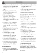 Instructions • Do not sit on the appliance. • Racks and trays should be inserted as far as they will go into the side guides. The mechanical safety locks that prevent them from being removed must face downwards and towards the back of the oven. • Never leave the appliance unattended during cooking operations where fats or oils could overheat and take fire. Be very careful • Danger of fire: do not store items on the cooking surfaces. • Do not spray any spray products near the oven.