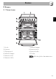Kuvaus FI 2.3 Keittotaso AUX = Lisä SR = Puolinopea UR2 = Pika 2.4 Muut osat Uunin tasot Jäähdytystuuletin Uunissa on eri korkeustasoja uunipeltien ja ritilöiden asemointia varten. Asetuskorkeudet lasketaan alhaalta ylöspäin (ks. 2.1 Yleinen kuvaus). Tuulettimen tehtävänä on jäähdyttää uunit ja se kytkeytyy päälle paiston aikana. Tuuletin muodostaa normaalin ilmavirtauksen, joka tulee ulos laitteen takapuolelta. Ilmavirtaus voi jatkua lyhyen aikaa myös uunin sammutuksen jälkeen.