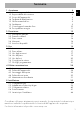 Sommario 1.1 1.2 1.3 1.4 1.5 1.6 1.7 1.8 Avvertenze generali di sicurezza Responsabilità del costruttore Scopo dell’apparecchio Targhetta di identificazione Questo manuale d’uso Smaltimento Come leggere il manuale d’uso Per risparmiare energia 2 Descrizione 2.1 2.2 2.3 2.4 2.5 Descrizione generale Pannello comandi Piano cottura Altre parti Accessori disponibili 3 Uso 3.1 3.2 3.3 3.4 3.5 3.6 3.