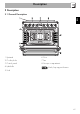 Description 2.2 Cooking hob AUX = Auxiliary SR = Semi-rapid R = Rapid DUAL = Ultra-rapid 2.3 Control panel 1 Function knob 3 Indicator light The oven's various functions are suitable for different cooking methods. After selecting the required function, set the cooking temperature using the temperature knob. The indicator light comes on to indicate that the oven is heating up. It turns off as soon as it reaches the set temperature.