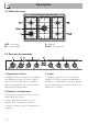 Utilisation 7. Pour activer le tournebroche, tournez la 3.3 Utilisation de la table de cuisson manette des fonctions en position et réglez la température de cuisson avec la manette de la température. Tous les contrôles et les commandes de l’appareil sont réunis sur le panneau frontal. Au niveau de chaque manette est indiqué le brûleur correspondant. L’appareil est équipé d’un allumeur électronique.