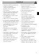 Käyttö Varoitukset Korkea lämpötila uunitilan sisällä käytön aikana Palovammojen vaara • Pidä luukku kiinni paiston aikana. • Suojaa käsiä uunikintailla ruokien liikuttamisen aikana uunin sisällä. • Älä koske uunin sisällä oleviin lämmityselementteihin. • Älä kaada vettä suoraan erittäin kuumille pelleille. • Älä päästä alle 8-vuotiaita lapsia uunin läheisyyteen sen toiminnan aikana.