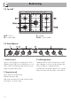 Användning 7. För att starta grillspettet ska man vrida och ställa in funktionsvredet till läge en temperatur för tillagning med hjälp av temperaturvredet. Man rekommenderas att hälla lite vatten i plåten för att undvika rökbildning. 8. När tillagningen har slutförts tar man ut plåten med grillspettet. 9. Använd det särskilda handtag som medföljer för att enkelt flytta grillspettet. 3.3 Användning av spishällen Alla hällens kontrollknappar och vred är grupperade på frontpanelen.