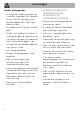 Innehåll 1.1 1.2 1.3 1.4 1.5 1.6 1.7 Allmänna säkerhetsanvisningar Tillverkarens ansvar Apparatens syfte Märkplåt Denna bruksanvisning Bortskaffande Hur man läser bruksanvisningen 2 Beskrivning 2.1 2.2 2.3 2.4 2.5 Allmän beskrivning Spishäll Kontrollpanel Andra delar Tillgängliga tillbehör 3 Användning 3.1 3.2 3.3 3.4 3.5 3.6 3.