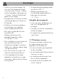 • Använd alltid kokkärl med jämn och plan botten. • Om det kokar över eller rinner över ska man torka bort vätskan från spishällen. • Var noga att inte hälla ut sura ämnen på spishällen, som t.ex. citronsaft eller vinäger. • Ställ inte tomma kastruller eller stekpannor på tända kokzoner. • Rengör aldrig apparaten med ångstråle. • Använd inte sträva eller slipande material eller vassa metallskrapor.