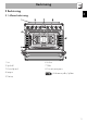 Beskrivning 2.2 Spishäll AUX = Reserv SR = Halvsnabb R = Snabb DUAL = Extra snabb 2.3 Kontrollpanel 1 Funktionsvred 3 Indikeringslampa Ugnens olika funktioner används för olika tillagningssätt. Välj först önskad funktion och ställ sedan in tillagningstemperaturen med hjälp av temperaturvredet. Lampan tänds för att visa att ugnen värms upp. Lampan slocknar vid den temperatur som har ställts in. Lampan blinkar regelbundet när temperaturen inne i ugnen ligger konstant vid det värde som ställts in.