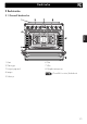 Beskrivelse 2.2 Platetopp AUX = Ekstra SR = Halvrask R = Rask DUAL = Ultrarask 2.3 Betjeningspanel 1 Funksjonsknapp 3 Varsellampe De forskjellige ovnsfunksjonene er egnet til forskjellige tilberedningsmåter. Etter å ha valgt ønsket funksjon, stiller du inn tilberedningstemperaturen ved hjelp av temperaturknappen. Tennes for å varsle om at ovnen er i forvarmingsfasen. Slukkes når temperaturen er nådd.