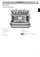 Beskrivelse 2.4 Andre dele Afkølingsventilator Positionsriller Ventilatoren sørger for at afkøle ovnene, og går i funktion under tilberedningen. Ventilatoren skaber et normalt luft-flow, som ledes ud fra den bageste del af apparatet, og som kan fortsætte sin funktion i en kort periode, også efter at apparatet er slukket. Apparatet er forsynet med riller til placering af bradepander og riste i forskellig højde. Indsætningshøjderne skal læses nedefra og opefter (se 2.1 Generel beskrivelse).