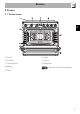 Kuvaus 2.4 Muut osat Jäähdytystuuletin Uunin tasot Tuulettimen tehtävänä on jäähdyttää uuni. Se kytkeytyy päälle paiston aikana. Tuuletin muodostaa normaalin ilmavirtauksen, joka tulee ulos laitteen takapuolelta. Ilmavirtaus voi jatkua lyhyen aikaa myös uunin sammutuksen jälkeen. Laitteessa on eri korkeustasoja uunipeltien ja ritilöiden asemointia varten. Asetuskorkeudet lasketaan alhaalta ylöspäin (ks. 2.1 Yleinen kuvaus).