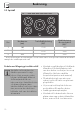 Effektstyrning Spishällen är utrustad med en modul för effektstyrning som optimerar/begränsar förbrukningen. Om de effektnivåer som ställts in tillsammans överskrider den maximalt tillåtna gränsen anpassar kretskortet automatiskt plattornas effekt. Systemet strävar efter att bibehålla maximala effektnivåer. På displayen visas de nivåer som ställts in av den automatiska kontrollfunktionen. Om en effekt blinkar betyder det att den automatiskt begränsats till ett nytt värde som valts av kontrollfunktionen.