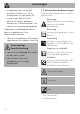 Användning 3 Användning Anvisningar Hög temperatur inne i ugnarna vid användning Fara för brännskada • Håll ugnsluckan stängd vid tillagning. • Skydda händerna med grillvantar när du flyttar mat inne i ugnen. • Rör inte vid värmeelementen inne i apparaten. • Häll inte vatten direkt på varma plåtar. • Låt inte barn som är yngre än 8 år närma sig apparaten när den är i drift.