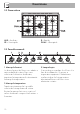 4 Manopole bruciatori del piano Ripiani di posizionamento Utili per accendere e regolare i bruciatori del piano. Premere e ruotare le manopole in senso antiorario sul valore per accendere i bruciatori corrispondenti. Ruotare le manopole sulla zona compresa fra il massimo e il minimo per regolare la fiamma. L’apparecchio dispone di ripiani per il posizionamento di teglie e griglie a diverse altezze. Le altezze d’inserimento sono da intendersi dal basso verso l’alto (vedi 2.1 Descrizione generale).