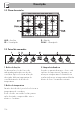Descrição 4 Botões dos queimadores da placa Prateleiras de colocação Úteis para ligar e ajustar os queimadores da placa. Pressionar e rodar os botões em sentido anti-horário para o valor para ligar os queimadores correspondentes. Rodar os botões na zona compreendida entre o máximo e o mínimo para regular a chama. O aparelho dispõe de prateleiras para a colocação dos tabuleiros e das grelhas a várias alturas. As alturas de introdução devem ser entendidas de baixo para cima (veja 2.1 Descrição geral).