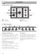 Uso 7. Para activar el asador, gire el mando de las funciones hasta la posición y programe una temperatura de cocción con el mando de la temperatura. Se aconseja poner un poco de agua en la bandeja del horno para evitar que se forme humo. 8. Al final de la cocción, saque la bandeja del horno con el asador. 9. Para mover cómodamente la varilla del asador, enrosque la manilla suministrada. 3.3 Uso de la encimera de cocción Todos los mandos y controles del aparato están ubicados en el panel frontal.