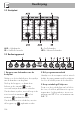 Gebruik 3.3 Gebruik van de kookplaat Alle bedieningen en schakelaars bevinden zich op het frontpaneel. Naast elke knop wordt de bijhorende brander aangeduid. Het apparaat is voorzien van een elektronisch ontstekingsmechanisme. Het is voldoende om op de knop te drukken en hem linksom te draaien op het symbool van de maximale vlam, tot de brander wordt ingeschakeld. Draai de knop op als de brander niet binnen 15 seconden wordt ontstoken. Wacht vervolgens 60 seconden, voordat u het nogmaals probeert.