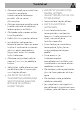 Käyttö Paino (Kg) Toiminto Taso Lämpötila (°C) Aika (minuutteina) Makkarat 1,5 Grilli 2 MAKS. 13 - 15 Porsaankyljykset Kyljykset Pekoni Sianliha filee Häränliha filee 1,5 1,5 0,7 1,5 1 Grilli Grilli Grilli Grilli Grilli 2 2 2 2 2 MAKS. MAKS. MAKS. MAKS. MAKS. Puoli 1 Puoli 2 15 5 10 10 7 8 10 5 10 7 Ruuat Taulukossa osoitettuihin aikoihin ei kuulu esilämmitysaikoja ja niitä on pidettävä viitteellisinä.