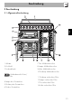 Beschreibung 2.2 Kochfeld AUX = Hilfsbrenner SR = Mittelstarker Brenner R = Starkbrenner UR2 = Blitzbrenner 2.3 Bedienblende 1 Drehknebel der Kochfeldbrenner 2 Programmieruhr Zum Einschalten und Regulieren der Kochfeldbrenner. Die Drehknebel drücken und sie entgegen dem Uhrzeigersinn auf den gewünschten Wert drehen, um die entsprechenden Brenner einzuschalten.