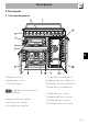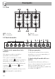 Descripción 2.2 Placa AUX = Auxiliar SR = Semirrápido R = Rápido UR2 = Ultrarrápido 2.3 Panel de mandos 1 Mandos de los quemadores de la encimera Útiles para encender y regular los quemadores de la encimera. Pulse y gire los mandos en sentido antihorario al valor para encender los quemadores correspondientes. Gire los mandos hasta la zona comprendida entre el máximo y el mínimo para regular la llama. Vuelva a poner los mandos en la posición para apagar los quemadores.