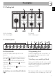 Description AUX = Auxiliary SR = Semi-rapid EN 2.2 Cooking hob R = Rapid UR2 = Ultra rapid 2.3 Control panel Hob burner knobs 2 Programming clock Useful for lighting and adjust the hob burners. Press and turn the knobs anti-clockwise to the value to light the relative burners. Turn the knobs to the zone between the maximum and minimum setting to adjust the flame. Return the knobs to the position to turn off the burners.