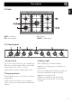 7. To activate the rotisserie, turn the function knob to the position and set the cooking temperature using the temperature knob. Pour a little water into the tray to prevent smoke from forming. 8. When cooking is complete, remove the tray with the rotisserie. 9. Screw on the handle provided so that you can handle the rotisserie rod more easily. 3.3 Using the hob All the appliance’s control and monitoring devices are located together on the front panel.