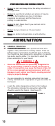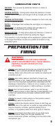 PREPARATION FOR FIRING CONT’D. • Always be alert and always follow the safety instructions of the range officer. • Always be sure that all cylinders and actions of firearms are open, that chambers are clear of cartridges, magazines are removed, and that firearms are pointing in a safe direction. • Always be alert. Never shoot if you are tired, cold or impaired in any way. • Always treat your firearm as if it were loaded. • Never use alcohol or drugs before or while shooting. AMMUNITION A.
