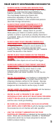 YOUR SAFETY RESPONSIBILITIES CONT’D. • You are responsible for the firearm at all times. In owning a firearm, you must undertake full-time responsibility for your firearm’s safety and security. You must protect yourself and all others against injury or death from misuse of the firearm. • Safe storage is your responsibility. In particular, you must secure firearms safely from children and unauthorized users. A lock has been provided for your use with this firearm.