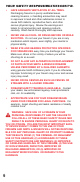 YOUR SAFETY RESPONSIBILITIES CONT’D. • HAVE ADEQUATE VENTILATION AT ALL TIMES. Discharging firearms in poorly ventilated areas, cleaning firearms, or handling ammunition may result in exposure to lead and other substances known to cause birth defects, reproductive harm, and other serious physical injury. Review the warnings and labels for all ammunition and cleaning products carefully. Wash hands thoroughly after exposure. • NEVER USE ALCOHOL OR DRUGS BEFORE OR WHILE SHOOTING.