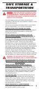 SAFE STORAGE & TRANSPORTATION WARNING: SAFE AND SECURE STORAGE OF YOUR FIREARM IS ONE OF THE MOST IMPORTANT RULES OF FIREARM SAFETY. YOUR FAILURE TO FOLLOW THESE RULES MAY RESULT IN SERIOUS INJURY OR DEATH TO YOU OR OTHERS. • You must always secure your firearm and ammunition separately so that they are not accessible to children or other unauthorized persons. • Safe and secure storage and transportation of your firearm are your responsibility. It is a full-time responsibility.