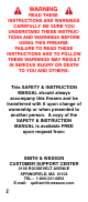 Safety & Instruction Manual Bolt Action Rifle Read the instructions and warnings in this manual CAREFULLY BEFORE using this firearm. 2100 Roosevelt Avenue • Springfield, MA 01104 1-800-331-0852 • Fax: 413-747-3317 www.smith-wesson.