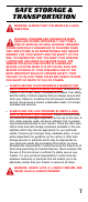 SAFE STORAGE & TRANSPORTATION WARNING: ALWAYS POINT THE MUZZLE IN A SAFE DIRECTION. WARNING: FIREARMS ARE DANGEROUS WHEN USED AND STORED IMPROPERLY. THEY POSE A RISK OF SERIOUS OR FATAL INJURIES. FIREARMS CAN BE ESPECIALLY DANGEROUS TO CHILDREN WHEN THEY ARE STORED IN AN IRRESPONSIBLE AND UNSAFE MANNER. FOR YOUR SAFETY AND THE SAFETY OF OTHERS, IT IS IMPERATIVE THAT YOU KEEP YOUR FIREARM LOCKED AND UNLOADED IN A SECURE PLACE.