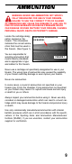 AMMUNITION CONT’D WARNING: NEVER USE NON-STANDARD, RELOADED OR “HANDLOADED” AMMUNITION WHICH HAS NOT BEEN SUBJECTED TO INTERNAL BALLISTIC PRESSURE TESTING. RELOADED OR HANDLOADED AMMUNITION, MAY HAVE MANY MANUFACTURING AND QUALITY VARIABLES (SUCH AS THE TYPE AND AMOUNT OF GUN POWDER).