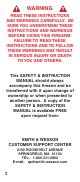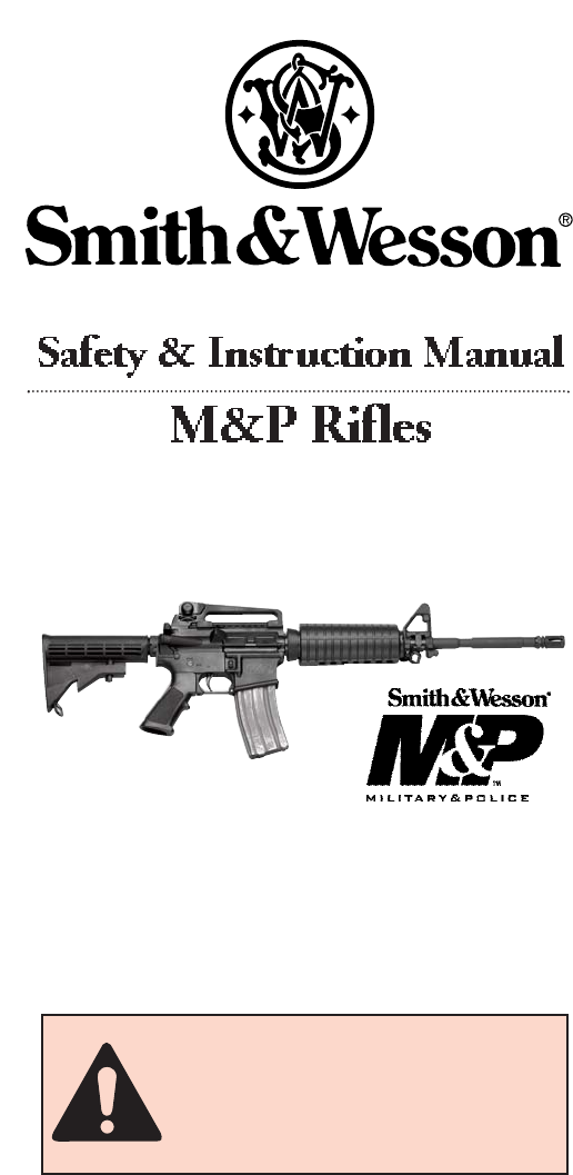 Safety & Instruction Manual M&P Rifles Read the instructions and warnings in this manual CAREFULLY BEFORE using this firearm. 2100 Roosevelt Avenue • Springfield, MA 01104 1-800-331-0852 • Fax: 413-747-3317 www.smith-wesson.