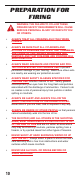 PREPARATION FOR FIRING WARNING: THE FAILURE TO FOLLOW THESE FIREARM SAFETY REQUIREMENTS WILL CAUSE SERIOUS PERSONAL INJURY OR DEATH TO YOU OR OTHERS. • ALWAYS TREAT ALL FIREARMS AS IF THEY WERE LOADED. • ALWAYS BE SURE THAT ALL CYLINDERS AND ACTIONS OF FIREARMS ARE OPEN, THAT CHAMBERS ARE CLEAR OF CARTRIDGES, MAGAZINES ARE REMOVED, AND THAT FIREARMS ARE POINTING IN A SAFE DIRECTION. • ALWAYS WEAR ADEQUATE AND PROPER EAR PROTECTORS SPECIFIED FOR FIREARM USE to prevent permanent damage to your hearing.