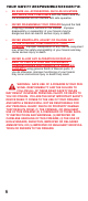 YOUR SAFETY RESPONSIBILITIES CONT’D. • BE SURE ALL ACCESSORIES, SUCH AS HOLSTERS AND GRIPS, ARE COMPATIBLE with the firearm and that the accessories do not interfere with safe operation. • NEVER DISASSEMBLE YOUR FIREARM beyond the field stripping procedure outlined in this manual. Improper disassembly or reassembly of your firearm may be dangerous and can lead to serious injury or death. • NEVER MANIPULATE, ADJUST OR CHANGE ANY OF THE INTERNAL COMPONENTS OF YOUR FIREARM.