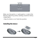 • Remove the battery cover located at the bottom of the mouse. • Insert the two supplied AA rechargeable Ni-MH batteries (included in the package) to the battery slots. Make sure the positive (+) and negative (-) ends of the batteries match the polarity markings inside the battery compartment. • Snap the battery cover back into position. Do not attempt to charge non-rechargeable disposable Alkaline batteries. The batteries may leak and damage your mouse or keyboard.