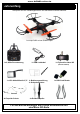 - www.ACME-online.de Contenu de la boite Assurez-vous que votre produit est complet avant la première utilisation! 1x Quadrocoptère zoopa Q420 cruiser 1x Télécommande 2.4GHz 1x Cordon de charge USB 1x FlyCamOne Nano HD (intégrée) 1x Accu LiPo 600mAh 3.7V 4x Protection rotor 1x Manuel / 1x Tournevis 1x Lecteur de carte USB 4x Hélices de rechange 2x Train d’atterrissage Pour utiliser votre modèle 6 piles AA et une carte SD sont nécessaires.