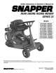 Troubleshooting (Continued) PROBLEM PROBABLECAUSE CORRECTIVEACTION Rider Will Not 1. Drive disc worn or damaged. 1. Replacedrive disc. Move Or Loss of Traction 2. Rubber drive disc is not tracking properly on drive disc. 2. Adjust rubber drive disc. 3. Taperedaxle bolt and nut missing. 3. Replacewith SNAPPERtapered bolt & nut. 4. Axle bearing seized. 5. Insufficient lubrication in chain case or transmission/differential. 4. Contact authorized SNAPPERdealer. Blade(s) Not 1.