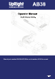 AB38 Serial Numbers 04244 – Current ENGLISH When contacting UpRight for service or parts information, be sure to include the MODEL and SERIAL NUMBERS from the equipment nameplate. Should the nameplate be missing, the SERIAL NUMBER is also stamped on top of the chassis above the front axle pivot. UpRight MODEL AB38W MAX. PLATFORM HEIGHT MAX. PLATFORM LOAD 400N MAX. LATERAL FORCE 36% MAX. FORWARD SPEED 3200 kg 200kg 2 Persons + 40kg. Equipment MAX. CHASSIS INCLINATION MAX.