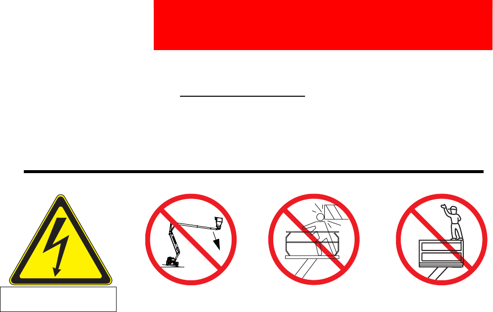 THIS AERIAL WORK PLATFORM IS NOT INSULATED! For this reason it is imperative to keep a safe distance from live parts of