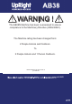 AB38 Serial Numbers 3700 – Current ENGLISH When contacting UpRight for service or parts information, be sure to include the MODEL and SERIAL NUMBERS from the equipment nameplate. Should the nameplate be missing, the SERIAL NUMBER is also stamped on top of the chassis above the front axle pivot. UpRight MODEL AB38W MAX. PLATFORM HEIGHT MAX. PLATFORM LOAD VIGO CENTRE WASHINGTON, TYNE & WEAR, UK. SERIAL No. 11.5m UNLADEN WEIGHT 400N MAX. LATERAL FORCE MAX. CHASSIS INCLINATION MAX.