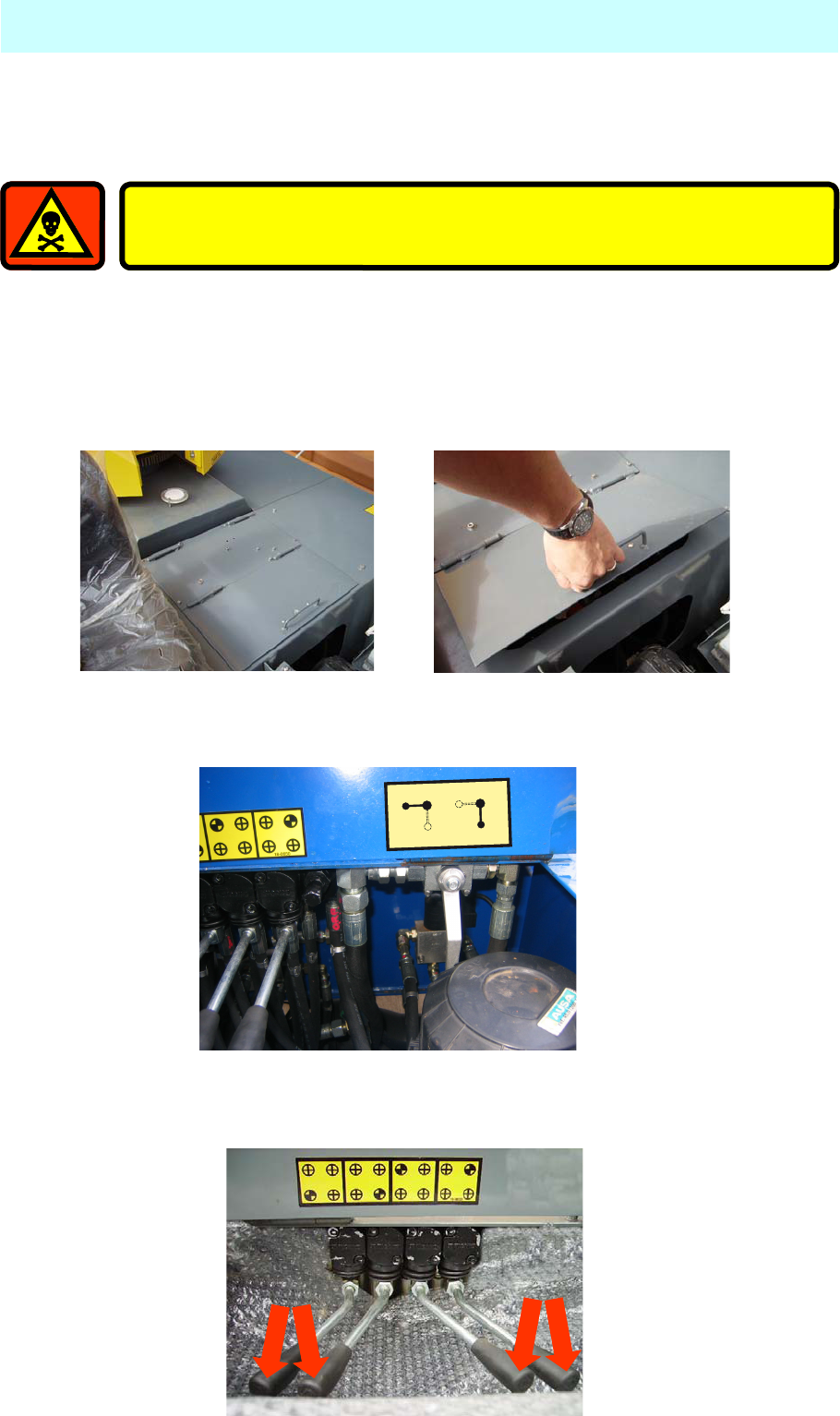 3. Lift the Outrigger control cover hatch, located at the side of the driving seat.