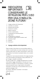 INDICAZIONI IMPORTANTI! CONSERVARE LE ISTRUZIONI PER L'USO PER UNA CONSULTAZIONE FUTURA! IT 1. 2. 3. 4. 5. 6. 7. 8. 9. 10. 11. 12. 13. Impiego conforme alle disposizioni Indicazioni di sicurezza Dotazione della fornitura Elemento di controllo Messa in esercizio Pulizia e manutenzione Conservazione e controllo periodico Segnalazioni Dichiarazione di conformità Smaltimento degli apparecchi elettrici usati Assistenza clienti Garanzia Dati tecnici 24 25 26 27 27 28 28 29 29 29 29 30 30 1.