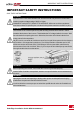 IMPORTANT SAFETY INSTRUCTIONS IMPORTANT SAFETY INSTRUCTIONS SAVE THESE INSTRUCTIONS WARNING RISK OF ELECTRIC SHOCK AND FIRE. Use this inverter only with PV modules with a maximum system voltage rating of 600V or higher. RISQUE DE CHOC ELECTRIQUE ET D’INCENDIE. Utilisez cet onduleur seulement avec des modules PV spécifiés pour une tension de système maximum de 600V ou plus. WARNING! The inverter cover must be opened only after shutting off the inverter ON/OFF switch located at the bottom of the inverter.