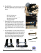 8.1 8.2 8.3 8.4 MN - (1) Electric motor - (4) 1/2”-13 x 1-1/2” carriage bolts - (4) ½”-13 “whiz” flange nuts TN - ¾” combination wrench - Lifting hoist Slide (4) carriage bolts, threaded portion up, into the channels. Using a hoist and the lifting lug, raise the motor over the BBF. As the motor is slowly lowered keep these actions in mind: 8.3.1 The channels must be slid in the slots to match the footprint of the motor. 8.3.2 The carriage bolts must be fed through the holes in the motor mounting plate.