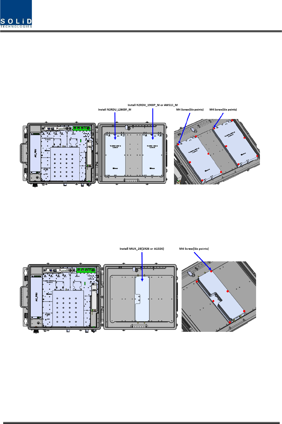 N2RDU_1900P_M, N2RDU_AWS13_M and N2RDU_L2600F_M module can be installed in the